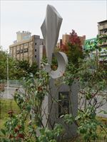 駅前にはいかりの形をした「寝屋川の船運碑」が建っています。