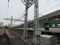 途中に京阪電車の車両基地があり、昼間でも時折電車の入線があります。