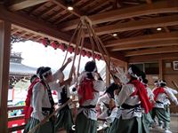 1対の臼と杵ではなく、1つの臼の周りに何人ものつき手が並びます。