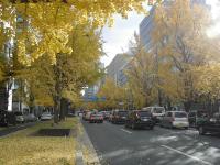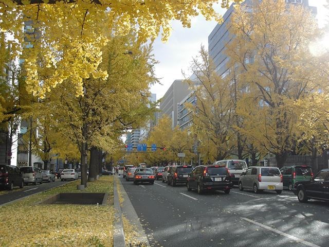 この季節の御堂筋はイチョウ並木が一斉に冬支度をして、50m道路も落葉で一杯です。