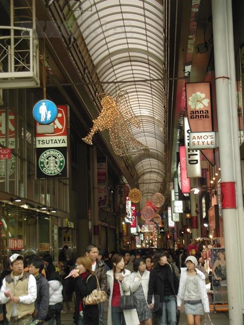 御堂筋の1本東側にある戎橋商店街のアーケードの中を歩くと、今までの歩く速度とは一転して人ごみのなかをノロノロとしか進むことができません。