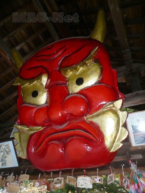 朱色の拝殿は、中央に馬が通るための土間が備わった割拝殿で、鎌倉時代中期に建築されたものです。