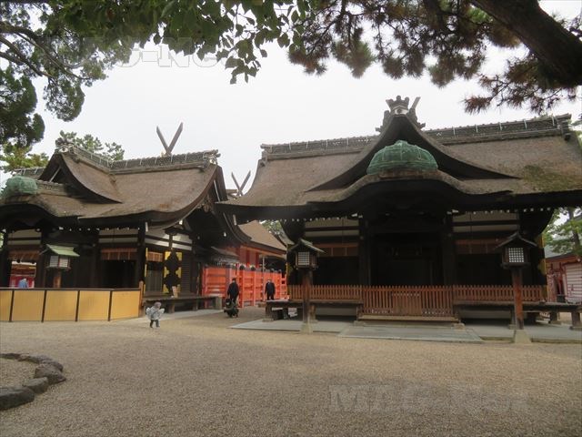 手前にある左右の社殿は右が神功皇后、そして左が表筒男命を祀ったものです。