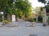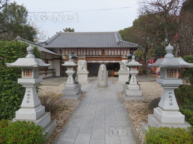 子宝祈願の神社で、両側を石灯篭でで挟まれた先には百度石があります。