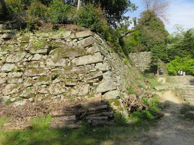 左右の傾斜面に石垣を積み上げ、平らな土地を造り出しています。