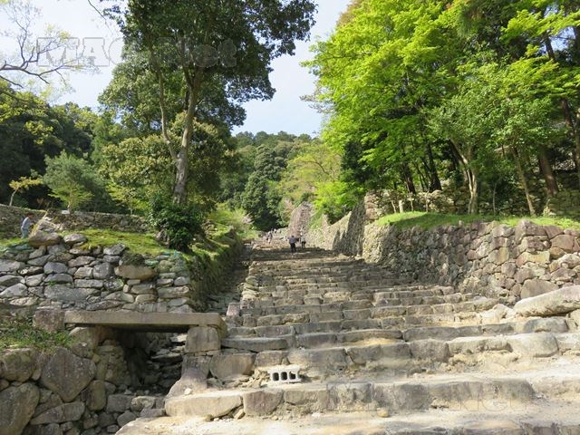 かつては絢爛豪華な「安土城」がそびえ立っていた安土山の山頂へは、石段を登っていきます。