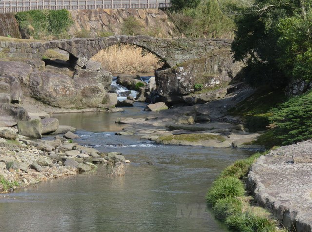 麓川の先には、小さな石橋が見えます。