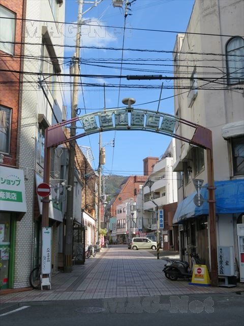 「長田橋市場」で、通路の左右に10軒余りの店が並んでいます。