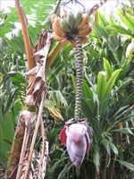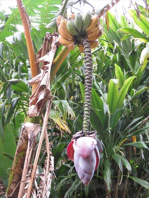 敷地内にはガジュマルが、そしてそこから出たところある島バナナは実をつけており、ちょうどいまが食べごろです。