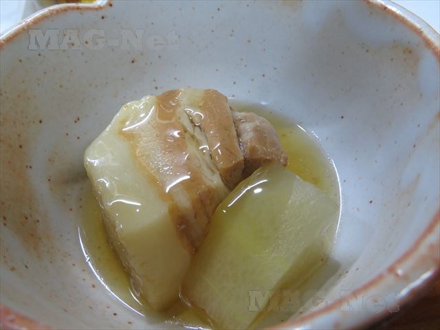 豚足を黒砂糖でじっくり煮たもので、実が柔らかくとろけるようです。