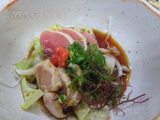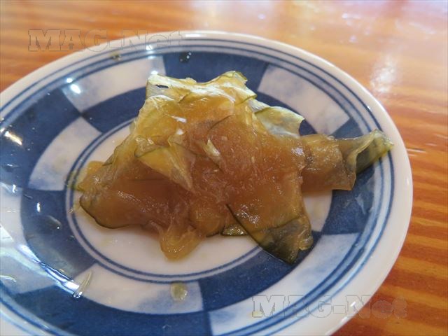 もちろんマグロと鯛、タコは獲れたての新鮮なもので、それにイギスと呼ばれる海藻を固めたものが付いています。
