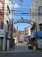 そして「長田橋市場」の入口には「教会発祥の地」の石碑が建っています。