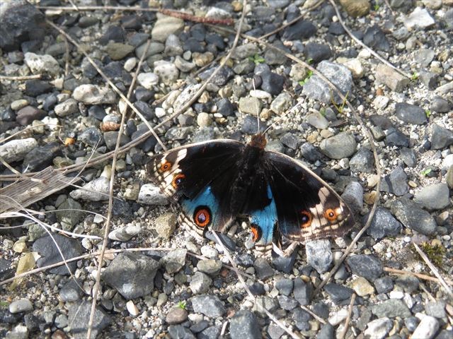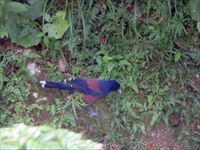 珍しい鳥でしかもつがいの2羽で、泥染めをしている奥の木々の間に降りてきたのです。