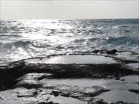 遠浅の海は、潮が引いて海底が浮かび上がっています。