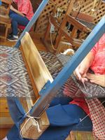 設計図通りに縦糸を織機にかけ、そこにこれまた設計図通りに横糸を織り込んでいきます。
