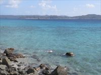 湾になっており波が穏やかなこの辺りは、水はどこまでも青く澄んでいます。