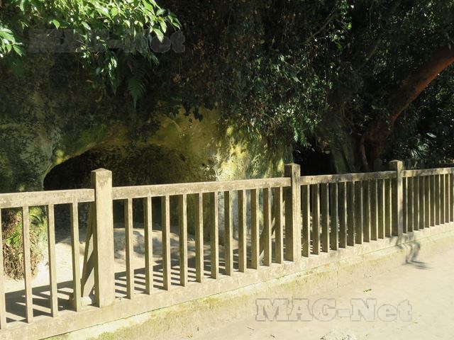その中には石を積み上げたような場所があり、その中央に石碑が立っています。