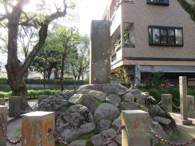 その「黎明館」の北側には、石垣で囲まれたところがあります。