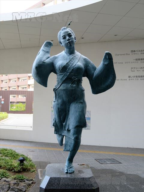 熊本駅には、「おてもやん」の像が、重苦しい心を打ち消すかの如く軽やかに舞っていたのでした。