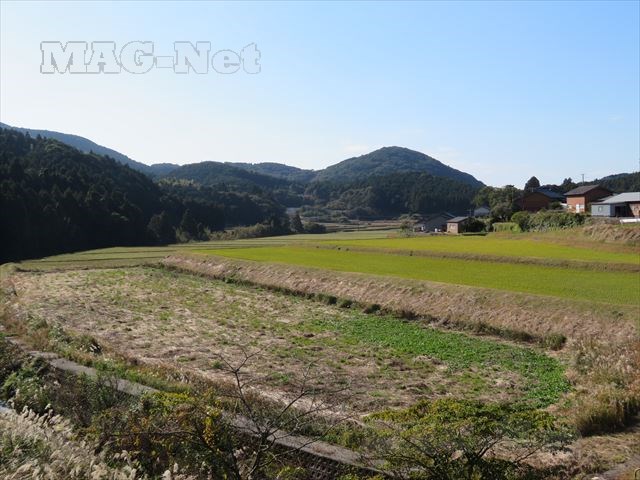 周りは田畑の向こうに山が見えるだけの道をしばらく走ってきましたが、やがて海が見えてきます。