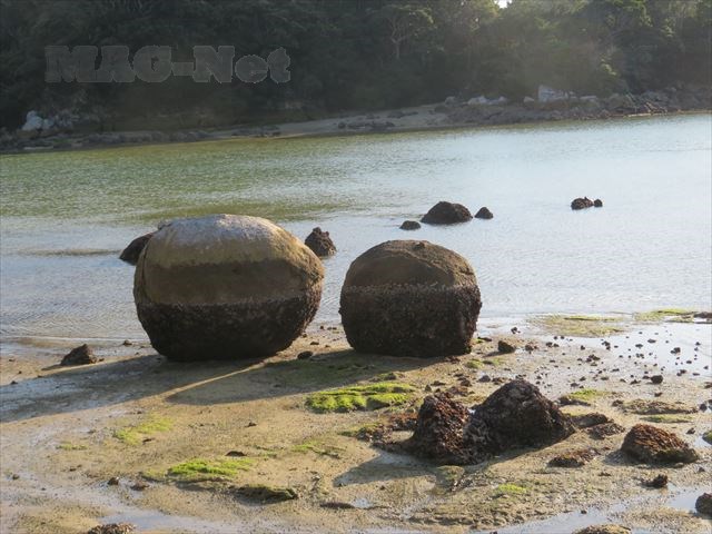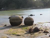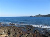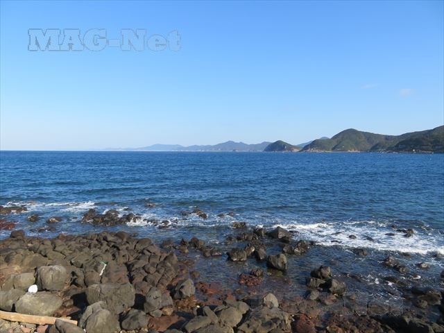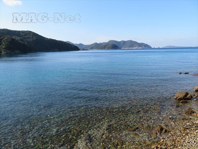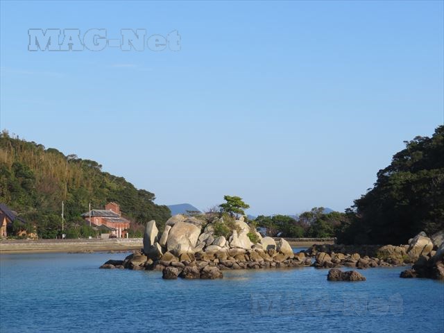 「堂崎教会」の前の入江には、大小さまざまな岩が転がっています。