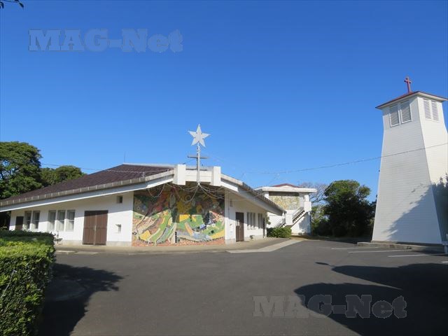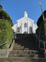 さて「水ノ浦教会」は道路脇にある白い建物です。