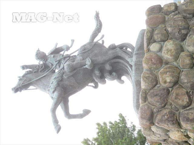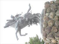芦辺港の前のロータリーには、「弘安の役」で元軍を迎え撃った「少弐資時」の像があります。