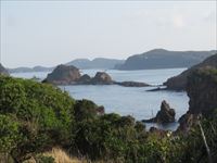 海中から突き出る柱のような奇岩は「観音柱」と呼ばれ、島が流されてしまわないように造った8本の柱、いわゆる「八本柱」のひとつと云われています。