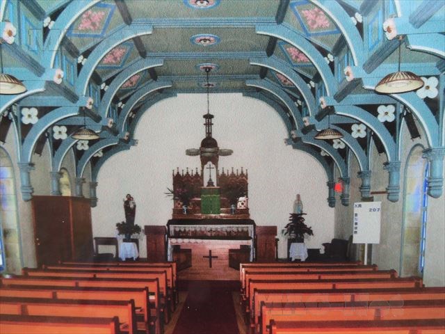 2007年に焼損してしまいますが、それまでは五島で最古のこうもり天井の木造教会でした。