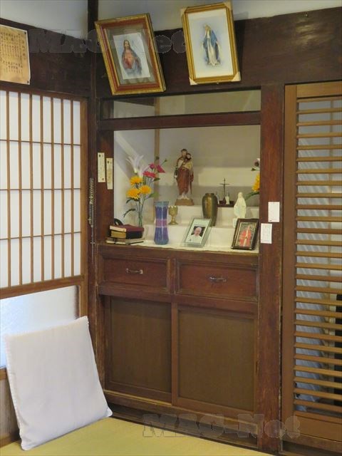 畳の間の片隅に祭壇があり、十字架が飾られています。
