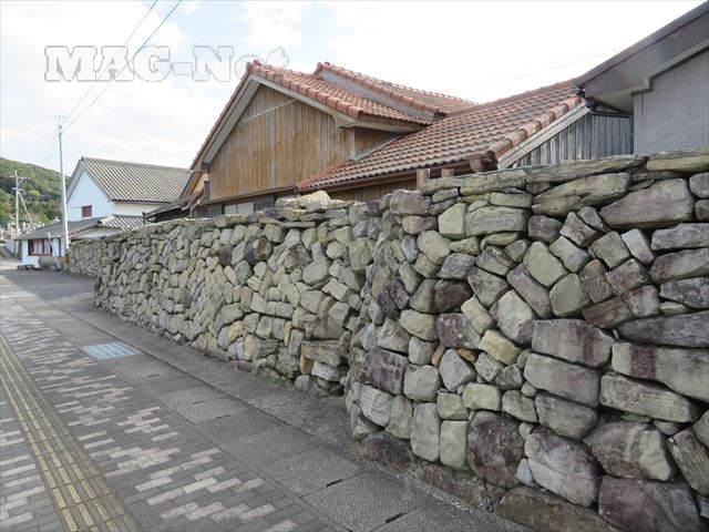 頭ヶ島へ行くときはバスの時間が気になり周りを見る余裕がなかったのですが、改めて車を走らせてみると石を積んだ外塀が多いことに気付きます。