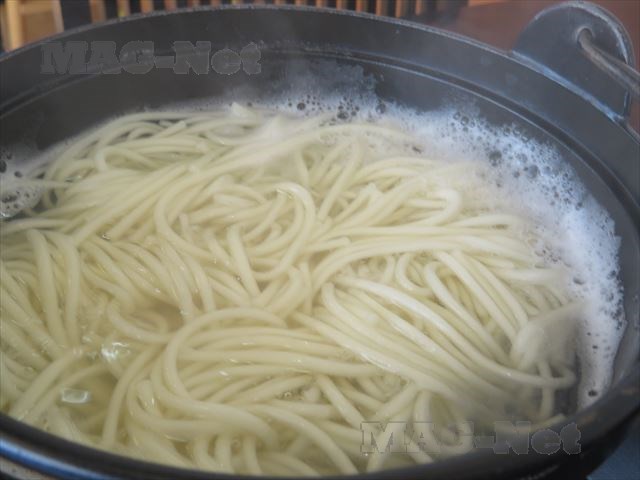 鍋の中で沸騰した湯でうどんが踊り、地獄を思い出させるものです。
