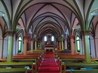 現在の教会はレンガ造りの重層屋根構造で、内部は3廊式のものです。