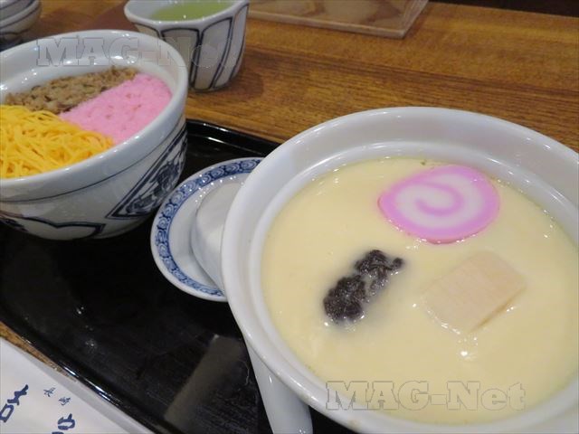 茶碗蒸しだけでなく、魚や卵を乗せた蒸し寿司を添えて出します。