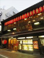 またこの辺りには軒下に赤い提灯が並ぶいくつかの建物を見ることができます。