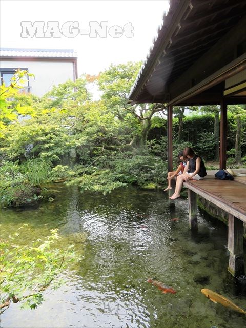 水が湧き出す池を庭にもち、池に張り出すように「四明荘」の縁側が建てられています。