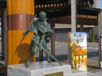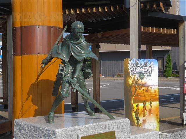 その脇にあるのが、アニメ「進撃の巨人」の像です。