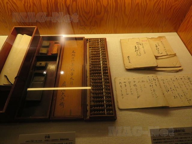 商家としての廣瀬家には、当時久兵衛が使っていたそろばんやすずりが展示されています。
