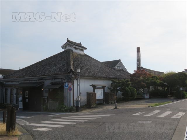この杉玉と言い、奥に見える煉瓦造りの煙突と言い、大きな酒蔵である証です。