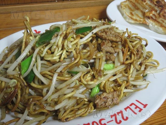 そして出てきた焼きそばは、いっぱいのモヤシが混ざり、カリカリになるまで焼いた麺の特徴のあるものです。