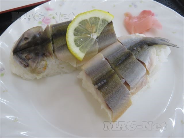 駅前にある食堂に入り、こちらの名物でもある「鮎寿司」を頼みます。