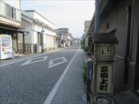 「深見酒舗」辺りから、豆田の街並みが始まります。