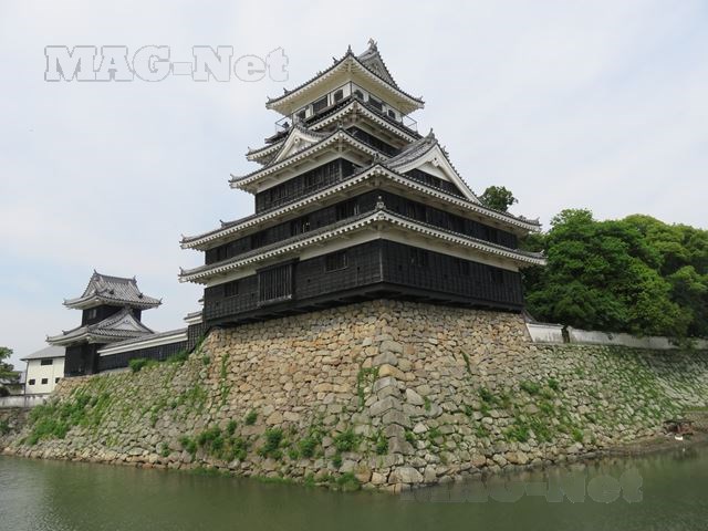 堀には海水が引き込まれ、今治城・高松城と並ぶ日本三大水城のひとつに数えられています。