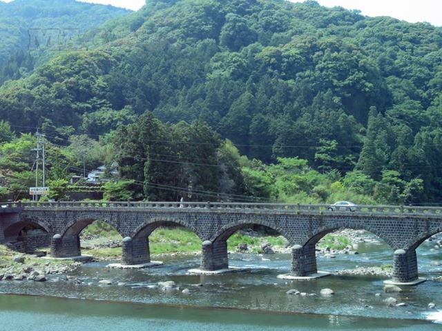 8連の美しい石造アーチ橋で、日本百名橋のひとつにも数えられています。
