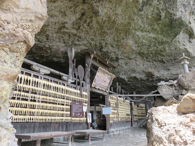 正面には無数のしゃもじが打ち付けられており、中には石像が祀られています。