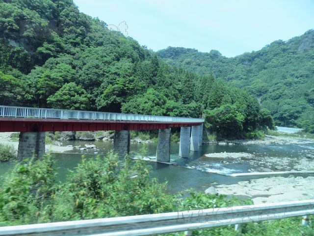 中津駅を出たバスは、「山国川」を上流に上って行きます。