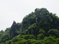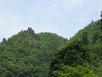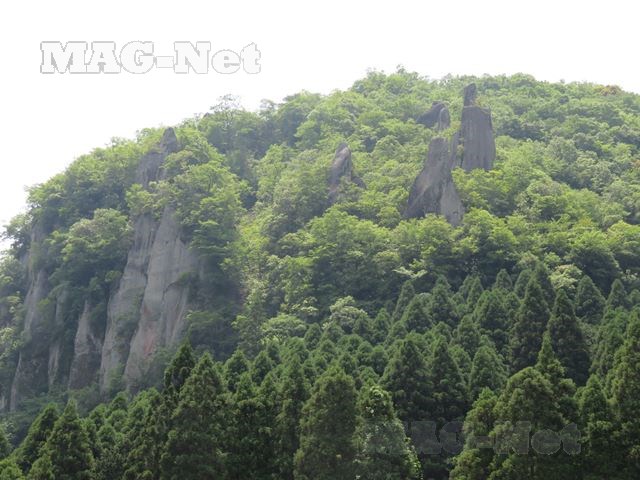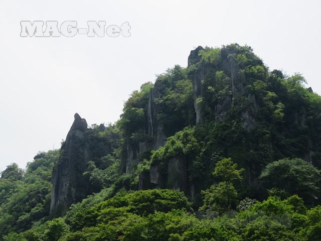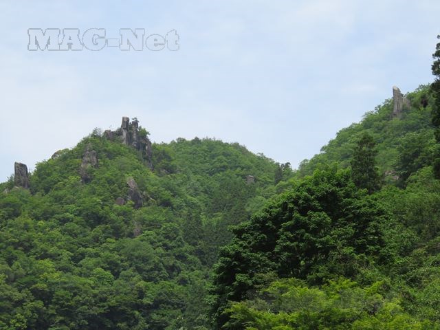 山の木々の間からは岩肌が覗き、荒々しく美しい山の風景を目にすることができます。
