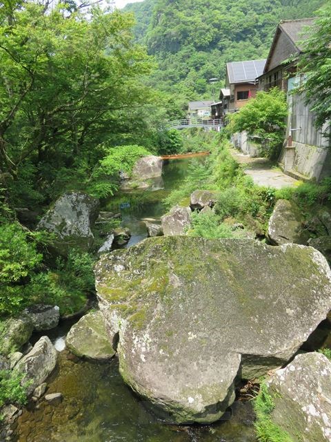 下を流れる「山移川」に目を移せば、大きな岩がごろごろ転がった合間を、澄んだ水が流れています。