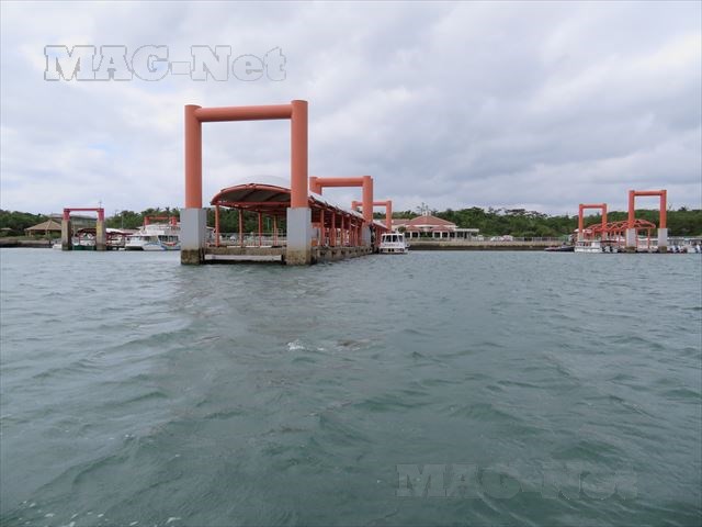 やがて赤い柱が立つ大原港桟橋に到着します。