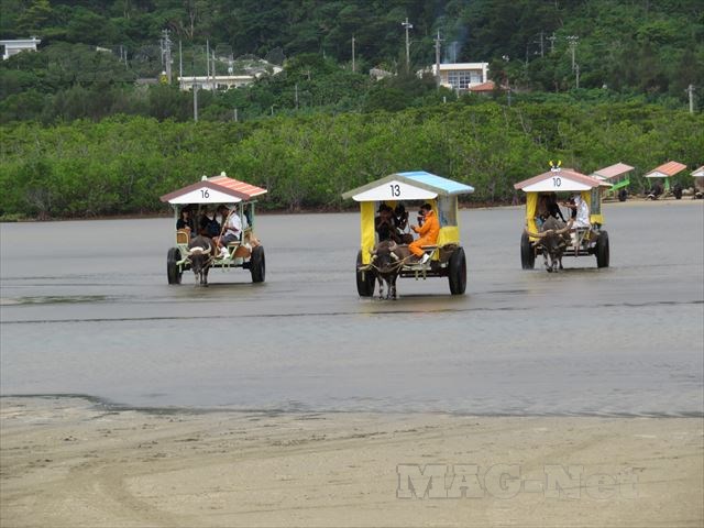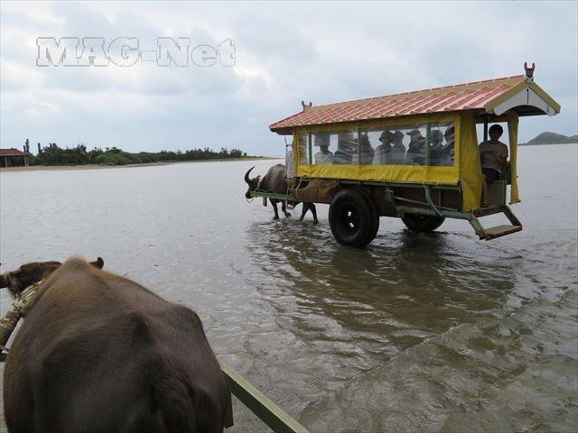海と言っても浅瀬ですので、水牛車の中まで水が入ってくることはありません。